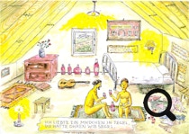 "ICH LIEBTE EIN MÄDCHEN" ist Ingos erster großer Hit. Die einzelnen Verse hat er auch auf Aquarell hinterlassen.